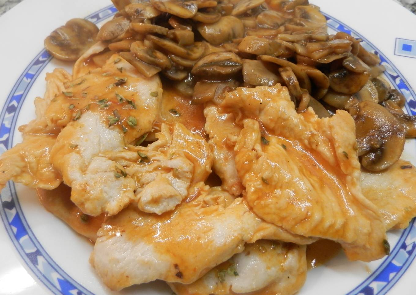 Filetes de pavo con champiñones