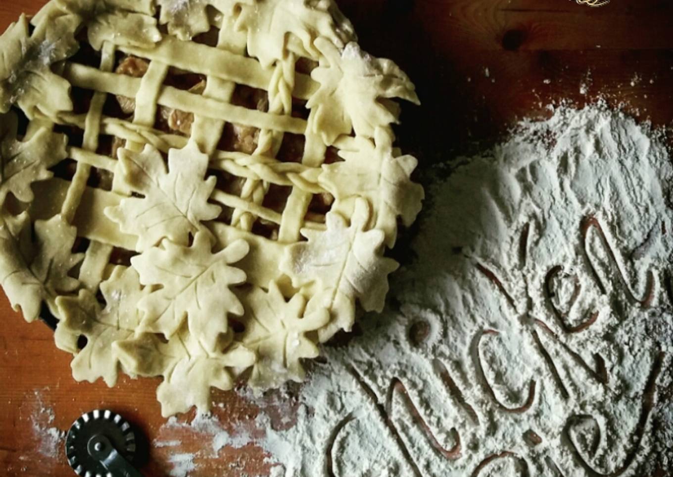 - Como nos sobrará masa decoramos los bordes con hojas o flores o estrellas o lo que más nos apetezca.