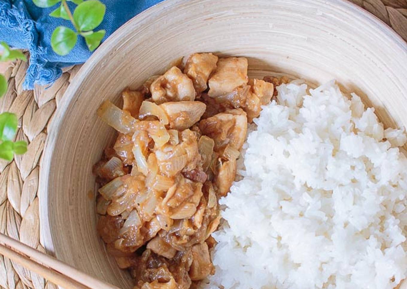 - Batimos y añadimos al pollo y la cebolla cuando éste se haya dorado.