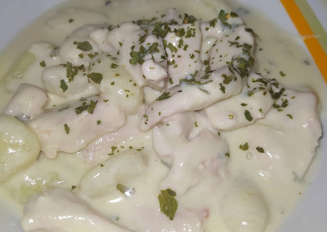 Instructions to make to make Pechuga de pavo con gnocchi y nata