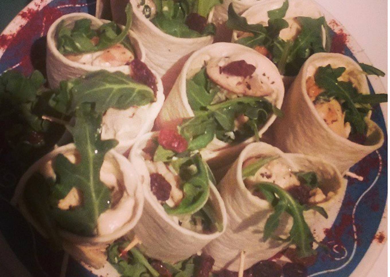 Steps to make to make Rollitos de pollo, humus y rúcula