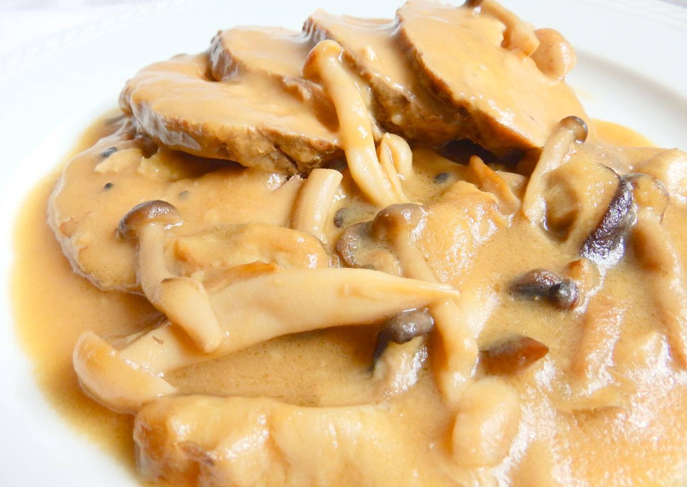 - Para hacer la salsa : En una sartén, con la mantequilla y el aceite, freír las setas; añadir la harina y el jugo de cocer la carne y dejar espesar, removiendo. Poner los filetes en la bandeja, con la salsa de setas encima. Calentar el horno antes de servir en la mesa. Buen provecho !!