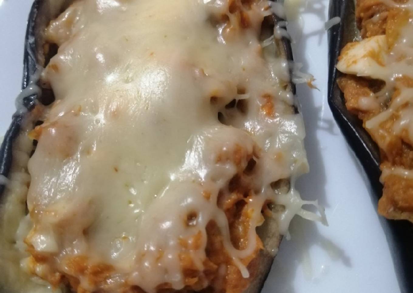 - Sólo queda rellenar las berenjenas y ponerles queso rallado y a gratinar al microondas de nuevo