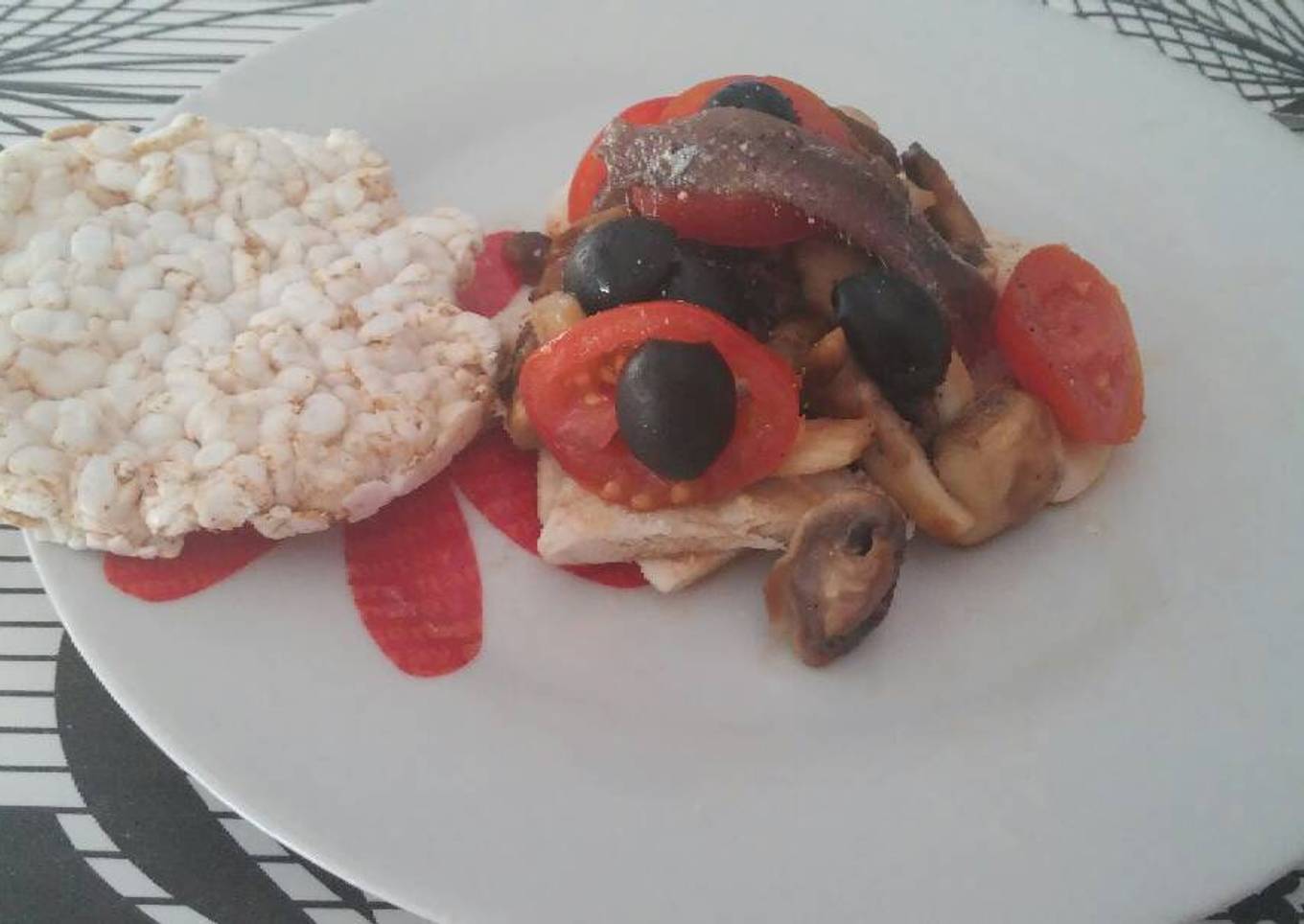 - Cortamos el resto de ingredientes en rodajas y repartimos entre los 2 platos.