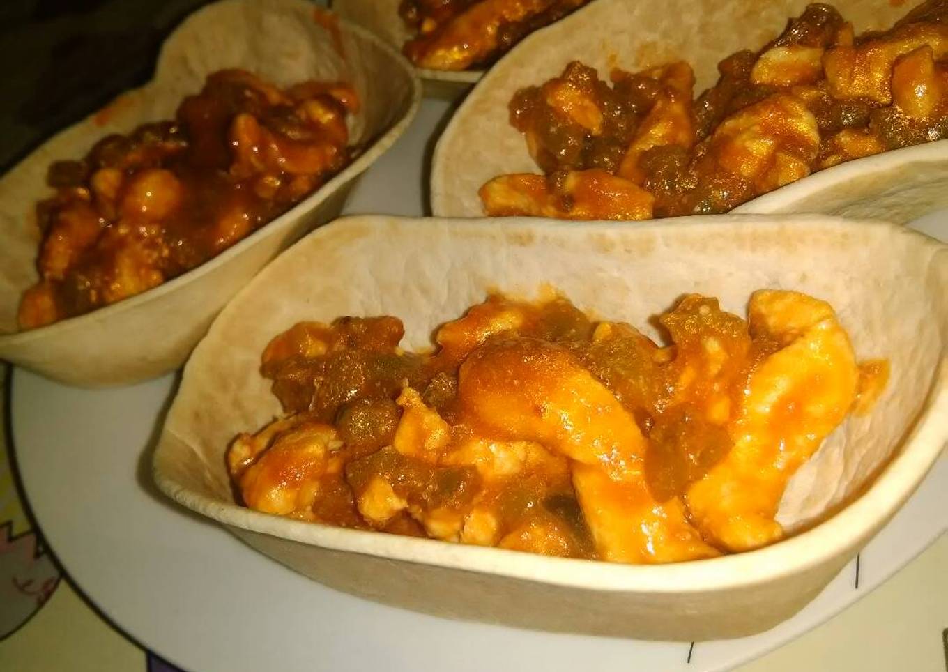 - Y cerrarlas tal y como vemos en la foto. Tambien podemos utilizar barquitas de trigo en vez de las tortitas