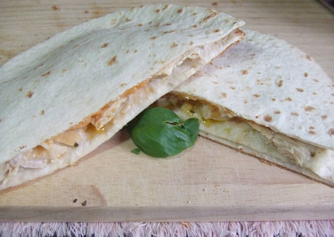Las quesadillas son unas deliciosas tortillas rellenas, en este caso, además del queso, llevan también pollo.