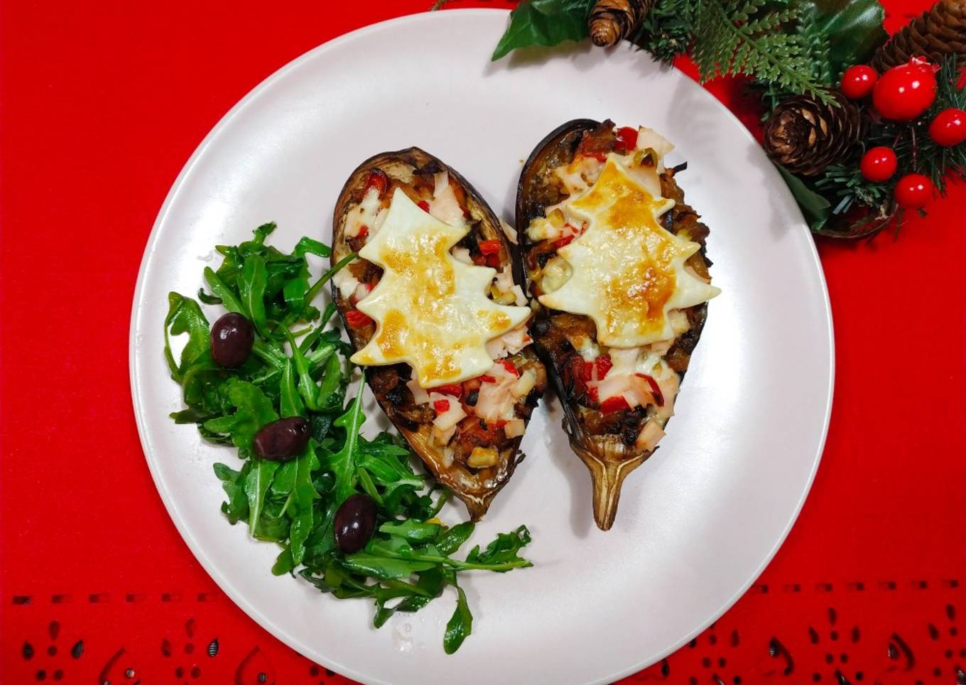 Instructions to make to make Berenjenas rellenas con un toque navideño 🎄