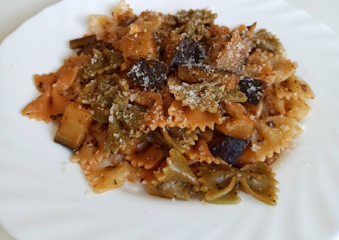 Instructions to make to make Pasta arrabiata versionada con berenjena