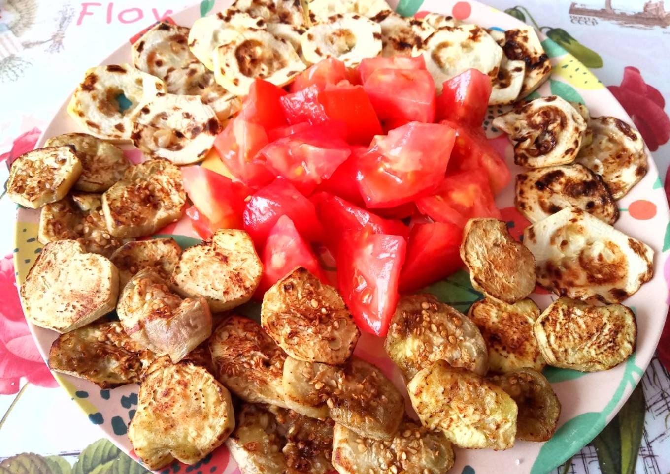 Steps to make to make Calabacín y berenjena a la plancha con tomate