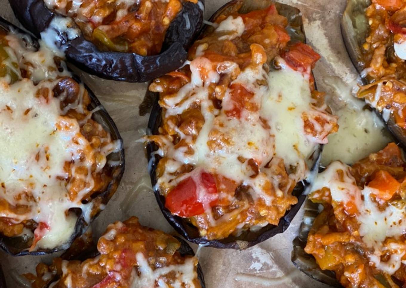 - Con una cucharita vamos rellenando las mitades de las berenjenas. Espolvoreamos el queso rallado para gratinar y lo ponemos en el horno unos 5/10 minutos y A disfrutar!! Se pueden comer calientes o frías!!