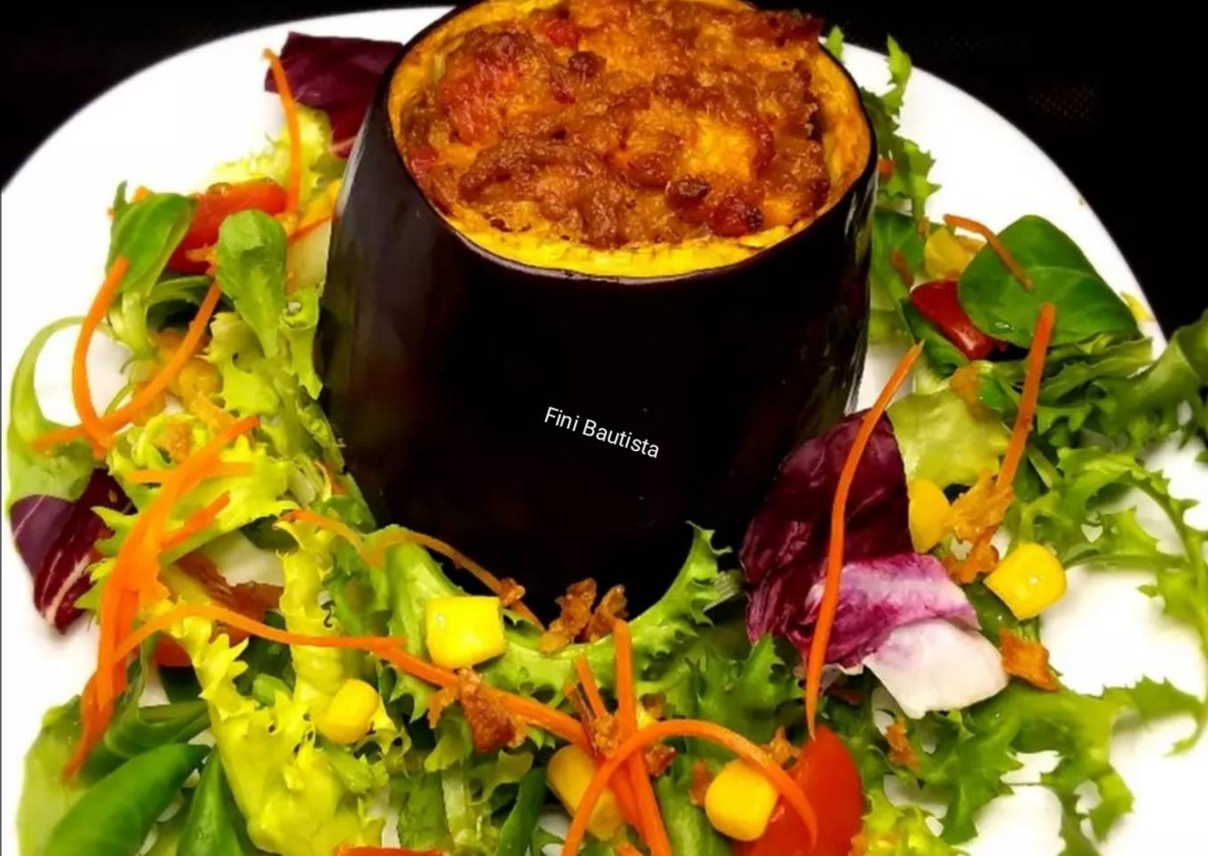 - Rellenamos la berenjena y horneamos a 180 grados por 35 minutos