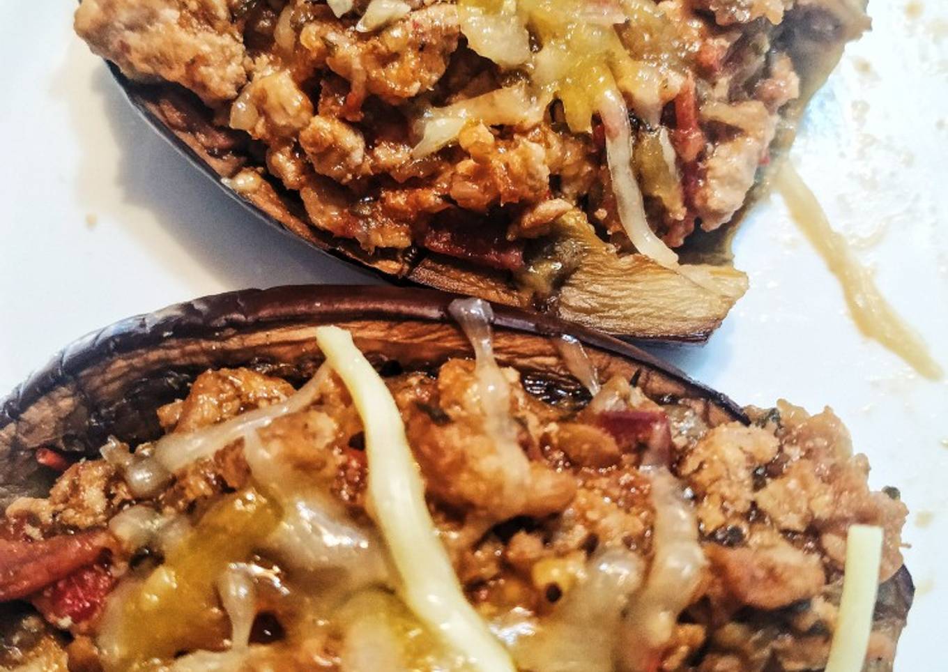 - Metemos el relleno en las berenjenas y echamos un poco de queso por encima, gratinamos y ya estarían listas