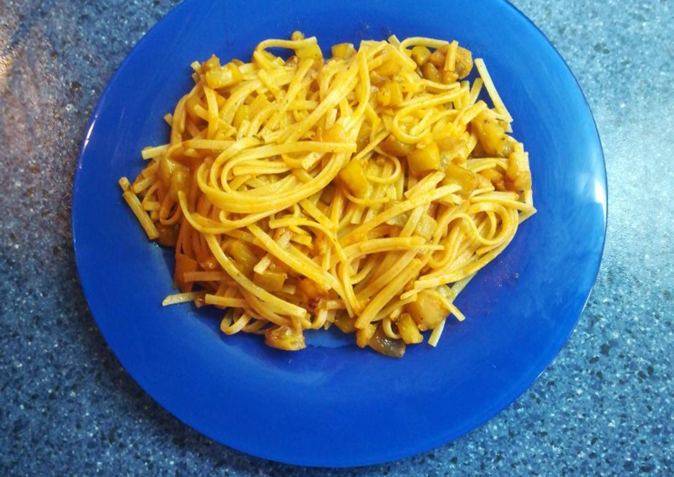 - Echamos los tallarines a la sartén con el sofrito, movernos bien y añadimos un poquito de albahaca.