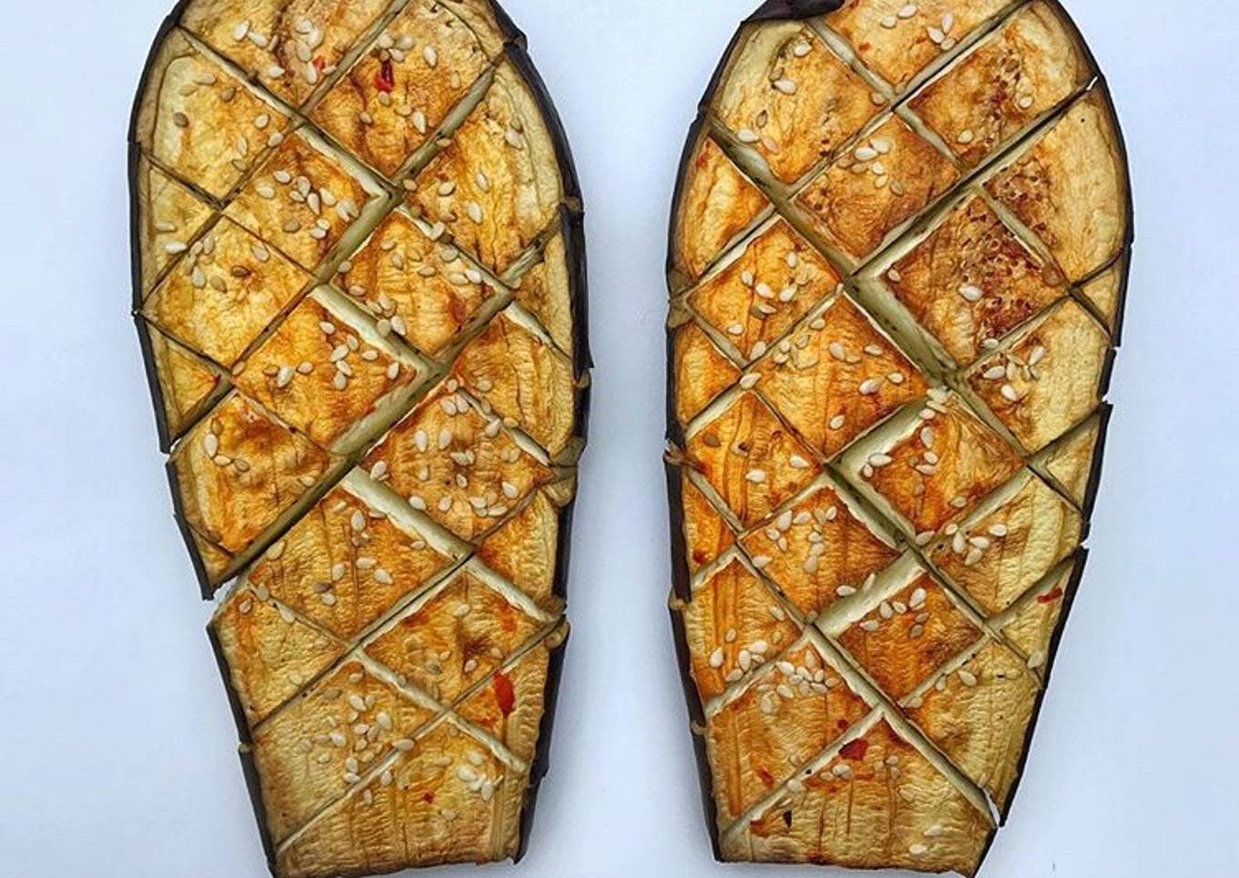 - Cortamos las berenjenas por la mitad y hacemos esos pequeños cortes en diagonal como se ve en la foto.