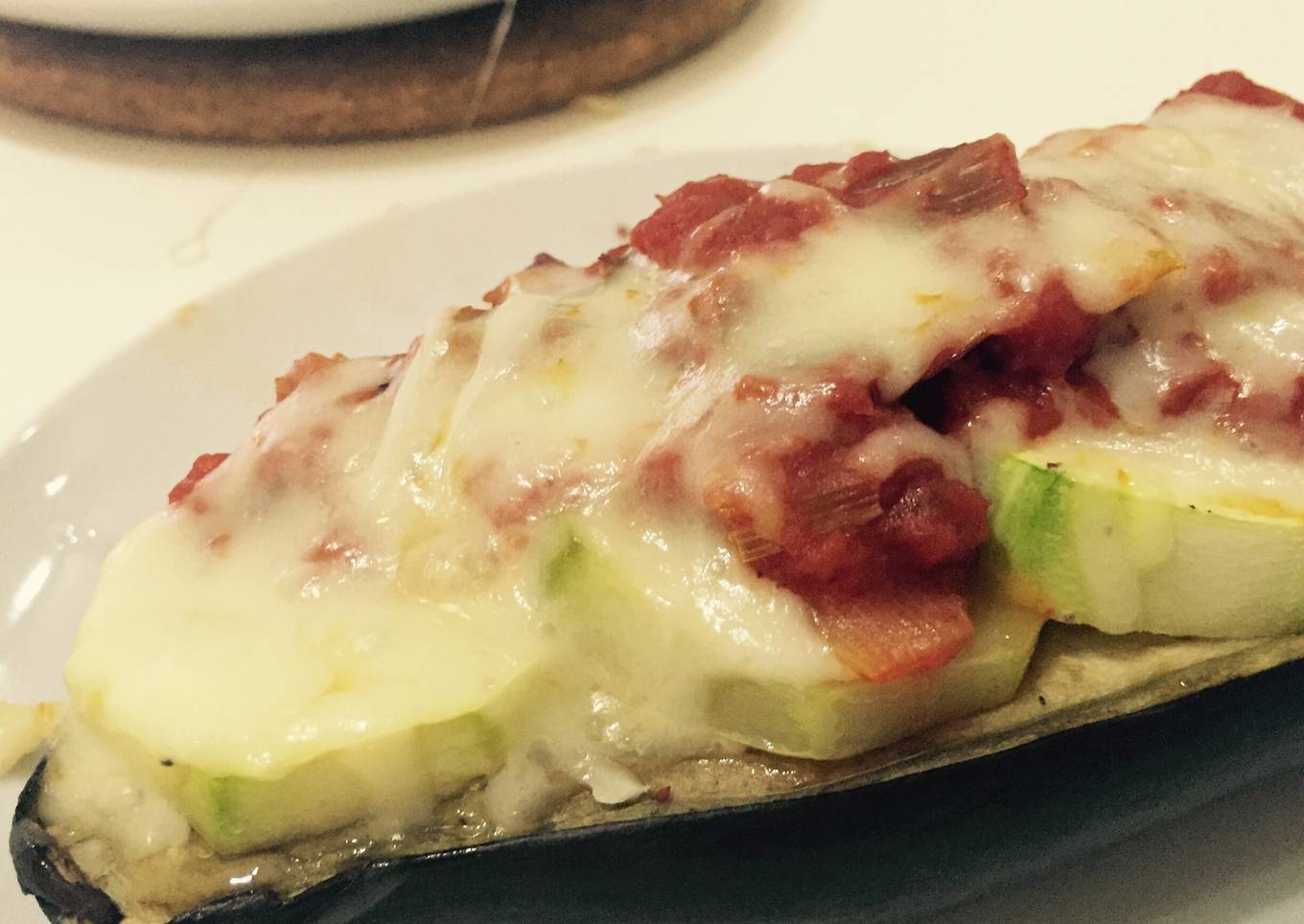 Berenjenas gratinadas con calabacín y tomate