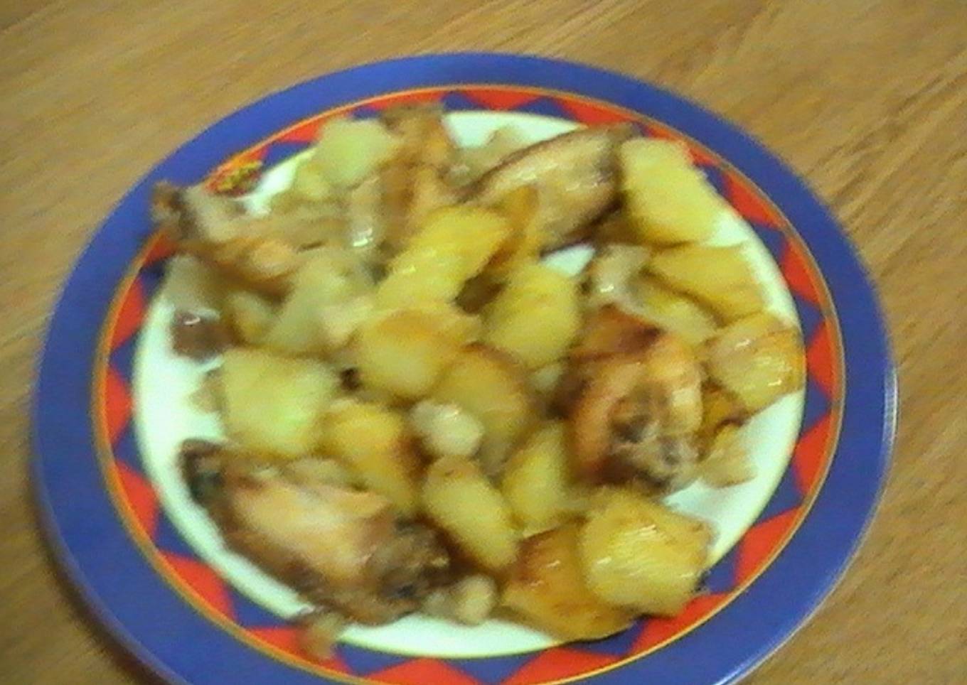 PLATO DE POLLO REVUELTO CON CEBOLLA Y BERENJENA. SON UNAS ALITAS DE POLLO QUE CON EL SABOR DE LA CEBOLLA Y LA BERENJENA ESTÁN GENIALES