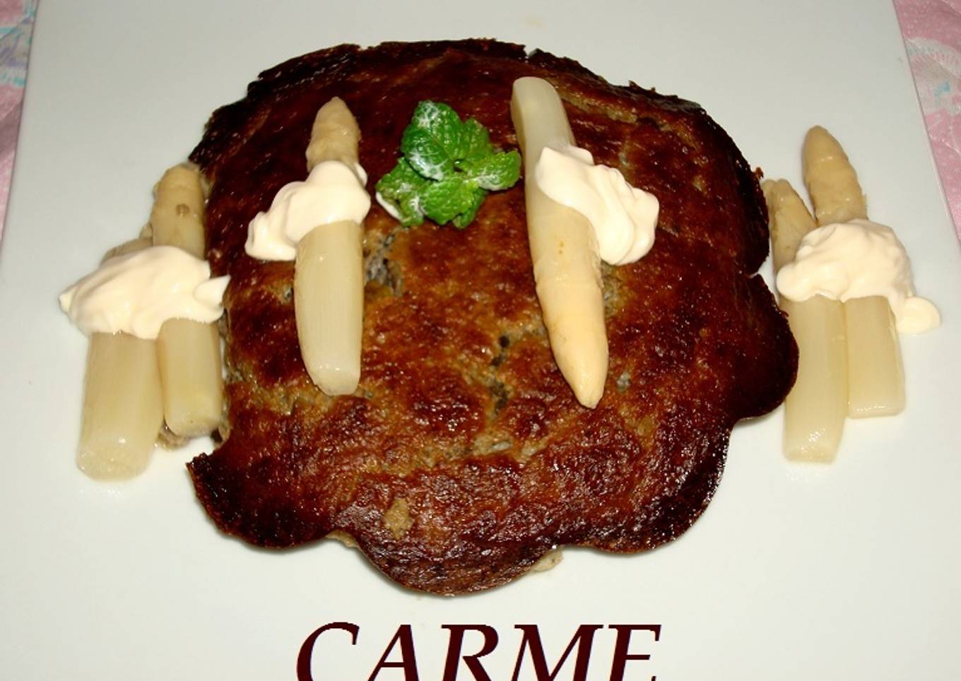 - Desmoldar , poner en un plato de presentación y decorar al gusto. Yo lo he acompañado de unas yemas de espárragos con mahonesa.