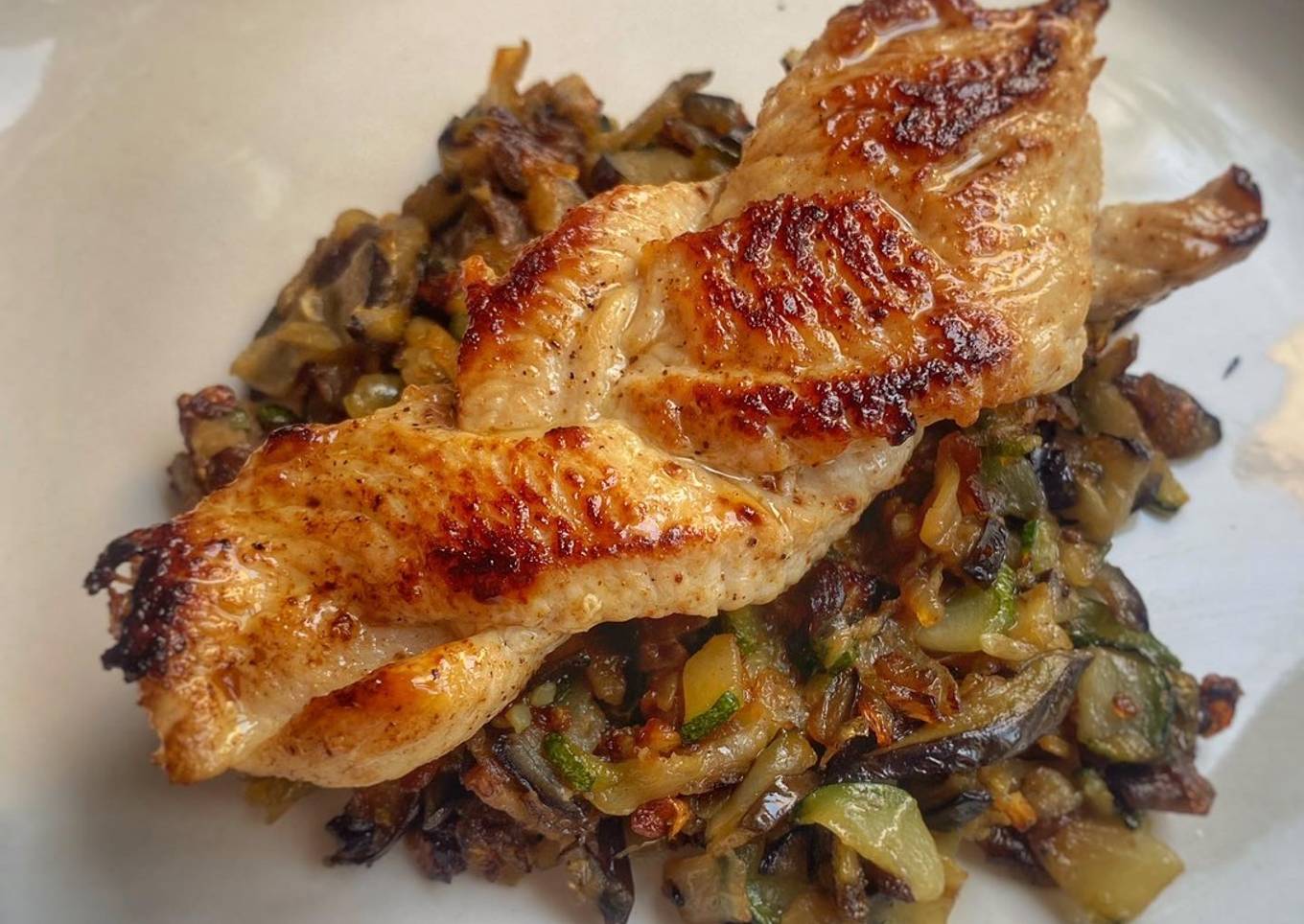 Trenza de pavo sobre lecho de verduras